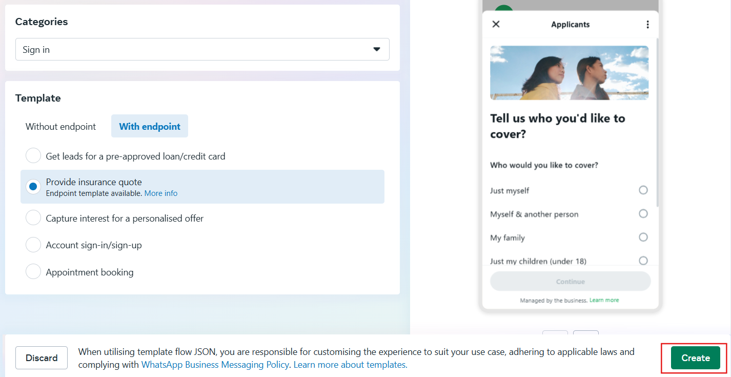 **Step 6**: If you want to create a new WA Flow, click the button shown in the box.